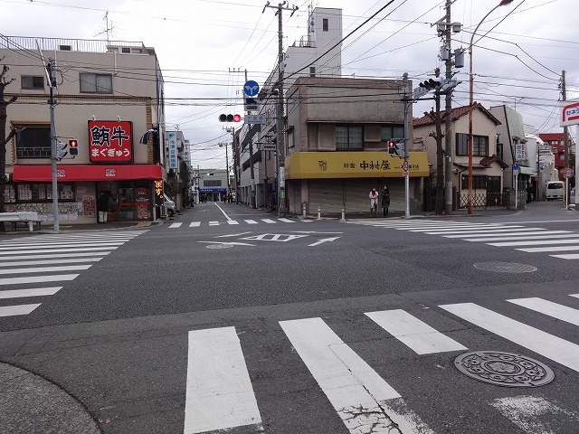 | 駅前から向河原商栄会を進むと南部沿線道路にぶつかります。 |