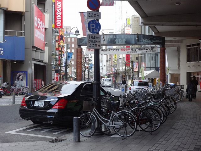 | ベルロードつるみの様子。商店街のメインストリートにはパーキングメーターが設置されています。 |