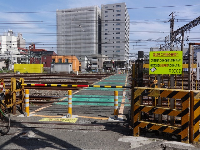 | 花月園前駅前北側の線路にある踏切です。”日本一長い”と言われているようです。なかなか開きません。 |