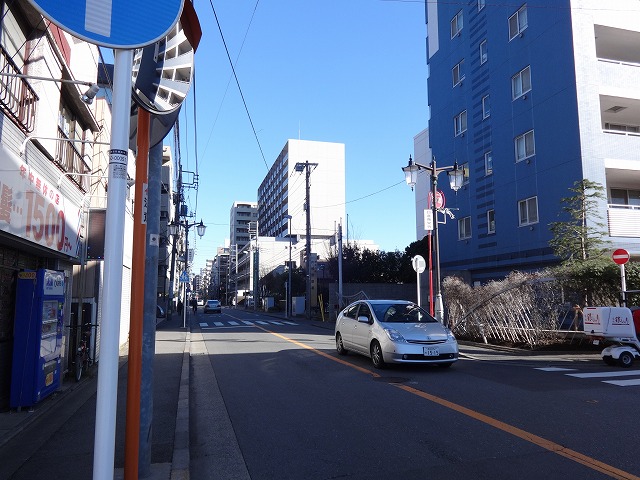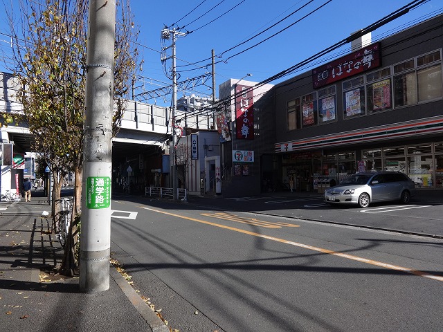 | 駅前のバス停とファミリーマートがある道を進むと第一京浜にぶつかります。 |