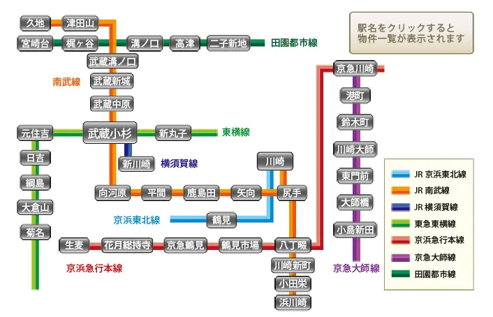 JR川崎駅徒歩5分、京急川崎駅徒歩3分