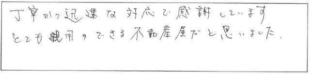 こまめにご連絡を頂き、とてもスムーズにお引渡しまで進めることが出来ました。