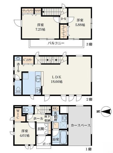 | JR南武線尻手駅 バス(乗車5分 停歩約6分) | 価格 4980万円 【手数料0円】 | 面積:106.35m² 区画面積61.04m² 階数: 地上3階 間取: 3LDK | 築年月:2026/06 新築未入居 構造 木造 |