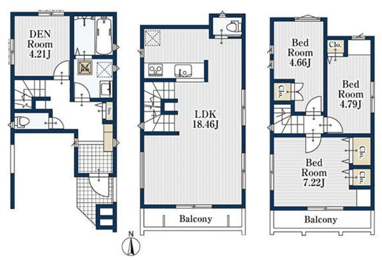 | JR南武線平間駅 徒歩約9分 JR横須賀線新川崎駅 徒歩 約22分 | 価格 5380万円 【手数料0円】 | 面積:89.63m² 区画面積72.36m² 階数: 地上3階 間取: 3SLDK | 築年月:2025/09 新築未入居 構造 木造 |