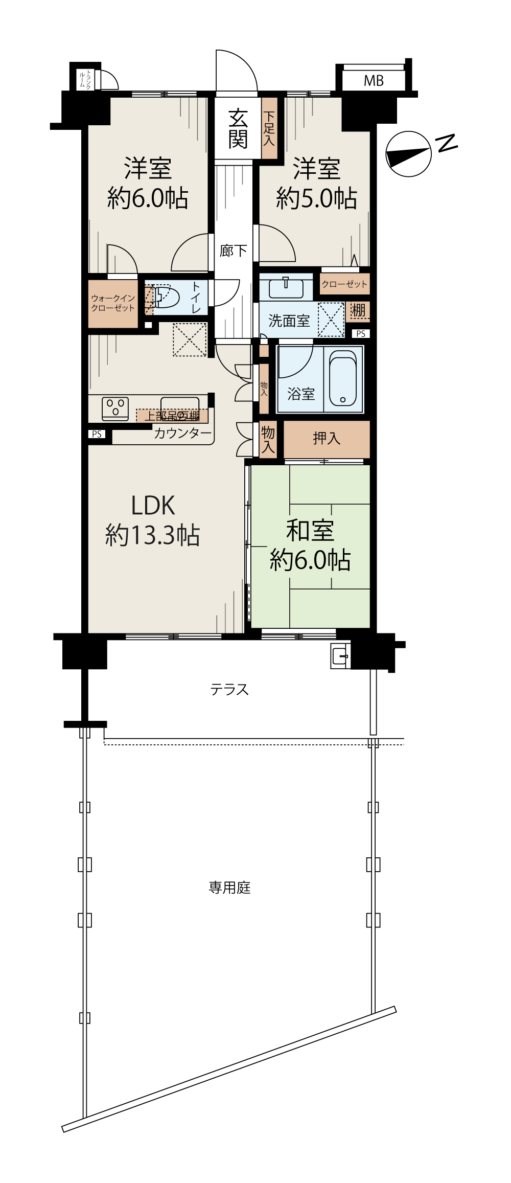 専用庭約40.94㎡!!+テラス約11.85㎡!! 1階につき小さなお子様がいても安心ですね! 水やりに便利なスロップシ...