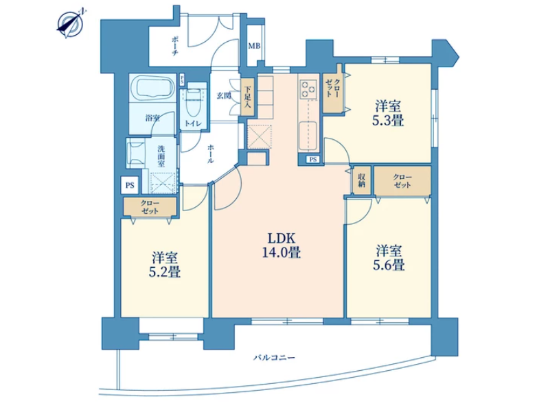 | バルコニー | 15.28m² | バルコニー向き | 南東 | ||