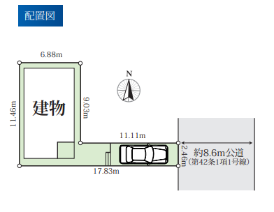 | 土地権利 | 所有権 | 接道 | 東 幅員約 8.60m(公道) | ||