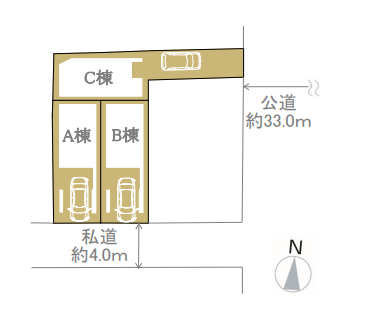 | 土地権利 | 所有権 | 接道 | 南東 幅員約 4.00m(私道) | ||