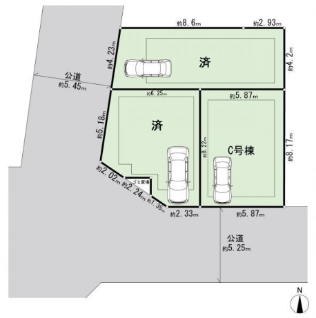土地権利所有権接道南 幅員約 5.25m(公道)