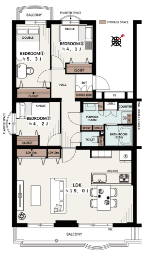 | 総戸/区画数 | 105 | 部屋番号 | 309 | ||