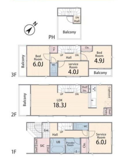 ※サービスルームはお部屋として利用できますのでお部屋数は実質4部屋