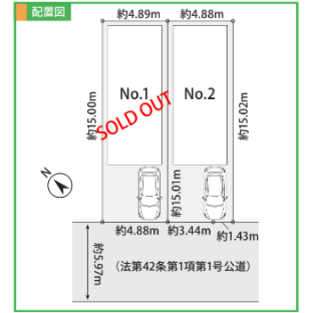 土地権利所有権接道南西 幅員約 5.90m(公道)