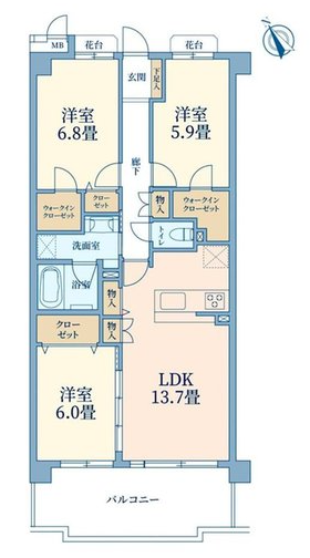 | バルコニー | 11.80m² | バルコニー向き | 南西 | ||