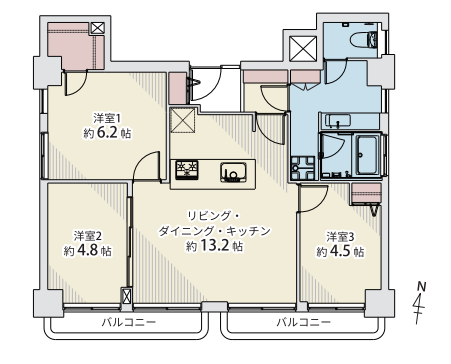 ★三方角部屋、南向きバルコニーにつき通風良好!