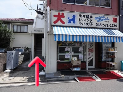 7.ペットショップの2階です。ペットショップ左横の階段を上がってください。