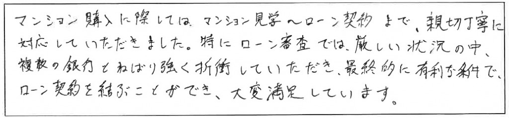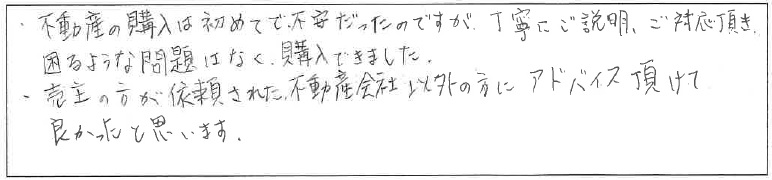 ・不動産の購入は初めてで、不安だったのですが、丁寧にご説明、ご対応頂き、