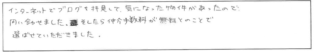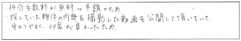 仲介手数料も無料であったことを理由に選ばさせて頂きました。