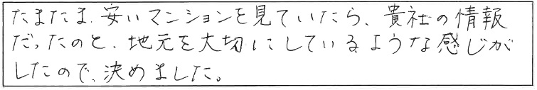 今の居住環境からほとんど変わらない立地、などが決め手となり!!