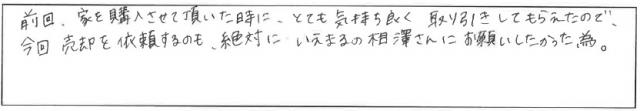 「今回の取り引きも全て、とても気持ちよく対応して頂きました。」