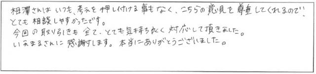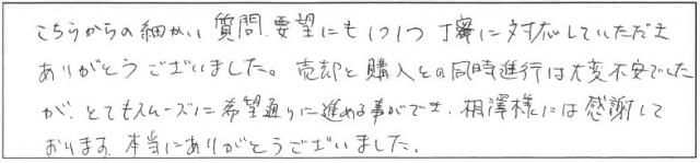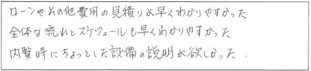 住宅ローンの手続きも全面的にご協力いただき、滞りなく進めることが出来ました。