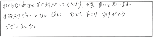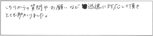 書類の準備、スケジュールの調整等、早急に対応して頂き、助かりました。