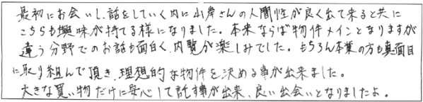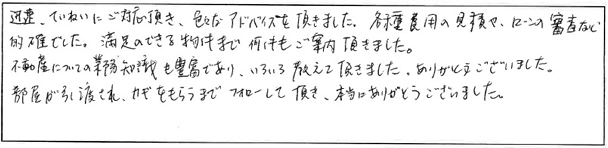 積極的に物件探しをして頂き、T様から「この物件は取扱いできますか?」とご連絡を頂くことが多かったです。