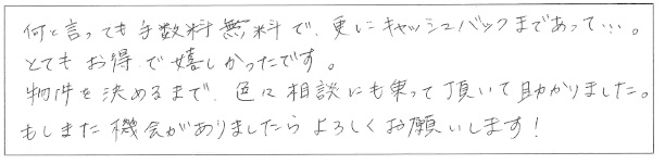 アンケートにあるように、ご主人様とは物件以外の話もいろいろさせて頂き、