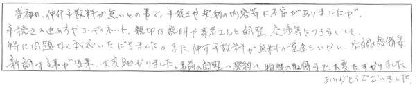 「手続きの進め方やコーディネイトなど特に問題なく対応頂きました。」