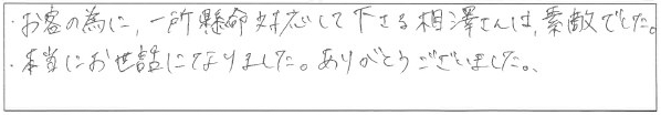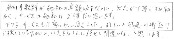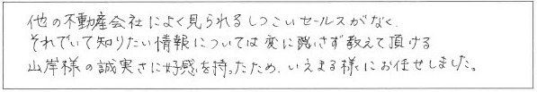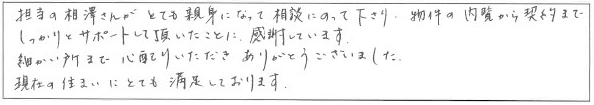 ご決断も早く、お引渡までスムーズに進めることができました。