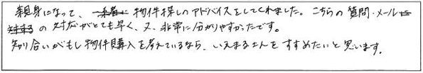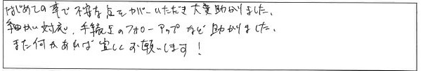 「細かい対応、手続きのフォローアップなど助かりました。」