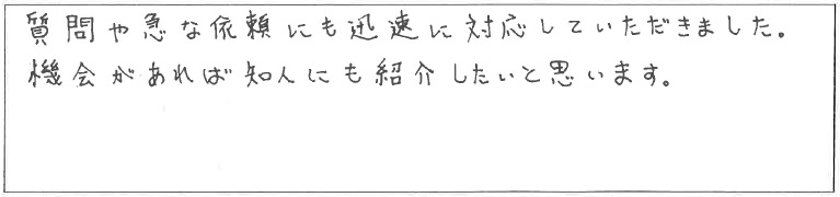 その他の対応も迅速でとても良かったです。