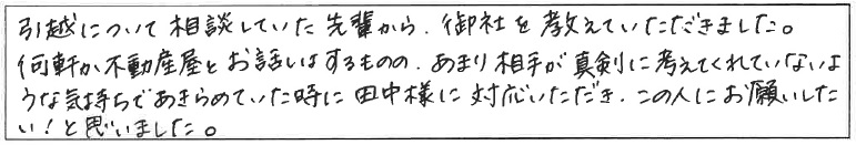 田中様に対応いただき、この人にお願いしたい!と思いました。