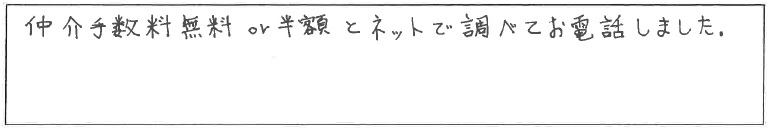 仲介手数料無料or半額とネットで調べてお電話しました。