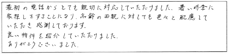高齢の両親に対しても色々と配慮していただき感謝しております。