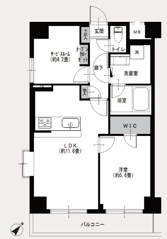 | バルコニー | 5.98m² | バルコニー向き | 南東 | ||