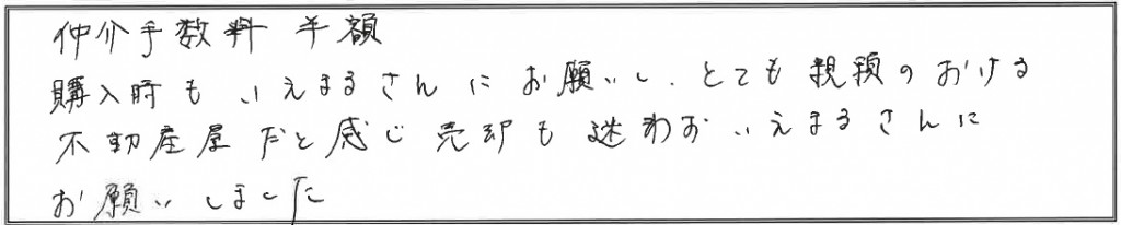 購入時もいえまるさんにお願いし、とても信頼のおける不動産屋だと感じ、売却も迷わずいえまるさんにお願いしました。