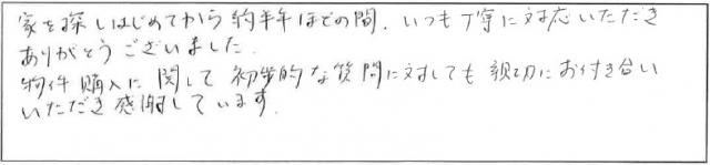 高津区の新築戸建をご購入されました。 S様は当初はマンションをお探しでしたが… 最終的には、新築戸建をご購入されました。 以前、こちらの物件のお近くにお住まいで、なじみがあったことと、 駅と保育園から坂が無く歩ける範囲であったこと、 が決め手でした。 お家さがしの途中、気に入られた物件が他の方に買われてしまったり… もありましたが、無事にご購入できて良かったです。 私もほっとしています。 写真は、ご購入物件の前で撮らせて頂きました。 子どもたちの喜びのポーズが決まっていますね! また、機会がありましたら、是非、いえまるにお声掛け下さい! 弊社をご利用いただき、誠に有難うございました。