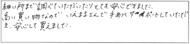 川崎市高津区の中古マンションをご購入されました。 当初から気になられていた奥様のご実家近くのマンションで、4LDKの広いお部屋に決められました。 結婚予定のお二人でしたが、物件のお引渡日に籍を入れられたそうです。 おめでとうございます! 物件購入とご入籍・・・ということで、ダブルでおめでたいです☆ 広いお部屋なのでご家族が増えてもゆったりとお過ごしになれますね。 弊社をご利用頂き、誠に有難うございました。