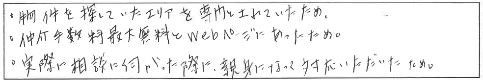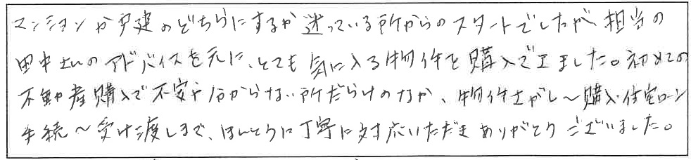 「物件さがし~受け渡しまで、ほんとうに丁寧に対応いただき、ありがとうございました。」