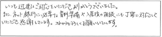 T様もとても紳士的な方で、内覧後、必ず丁寧に売主様にお礼の言葉をお伝えしていたのが印象的でした。