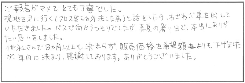 他社さんで8ヵ月以上も決まらず、販売価格を希望額よりも下げましたが、