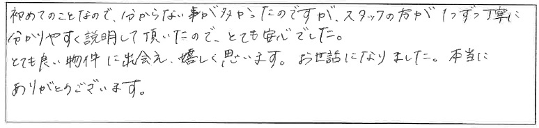 「1つずつ丁寧に分かりやすく説明して頂いたので、とても安心でした。」