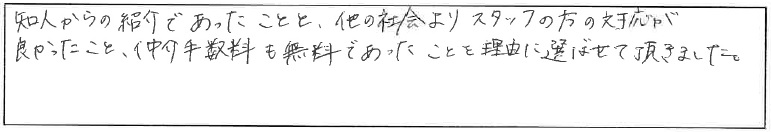 知人からの紹介であったことと、他の会社よりスタッフの方の対応が良かったこと、